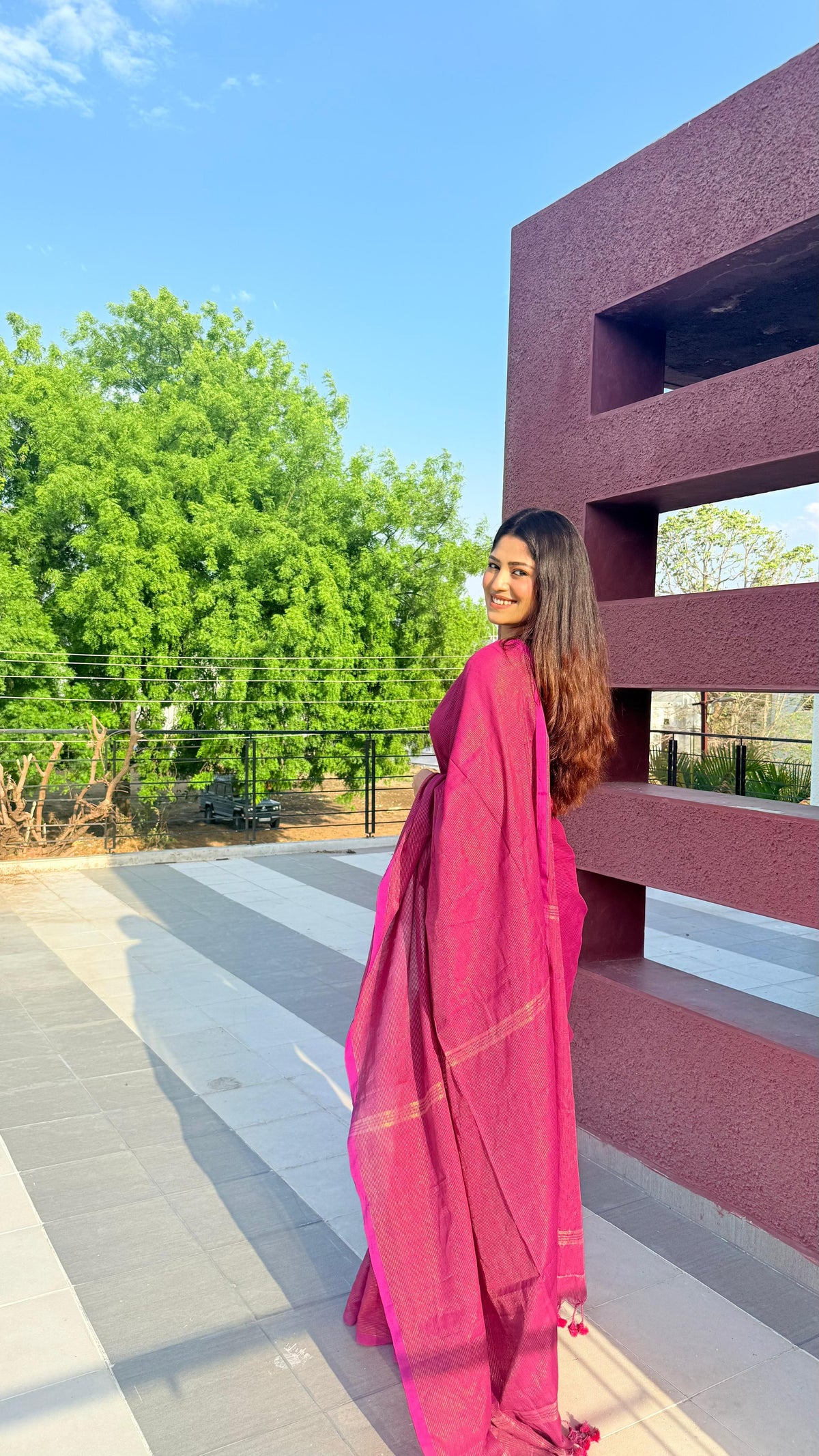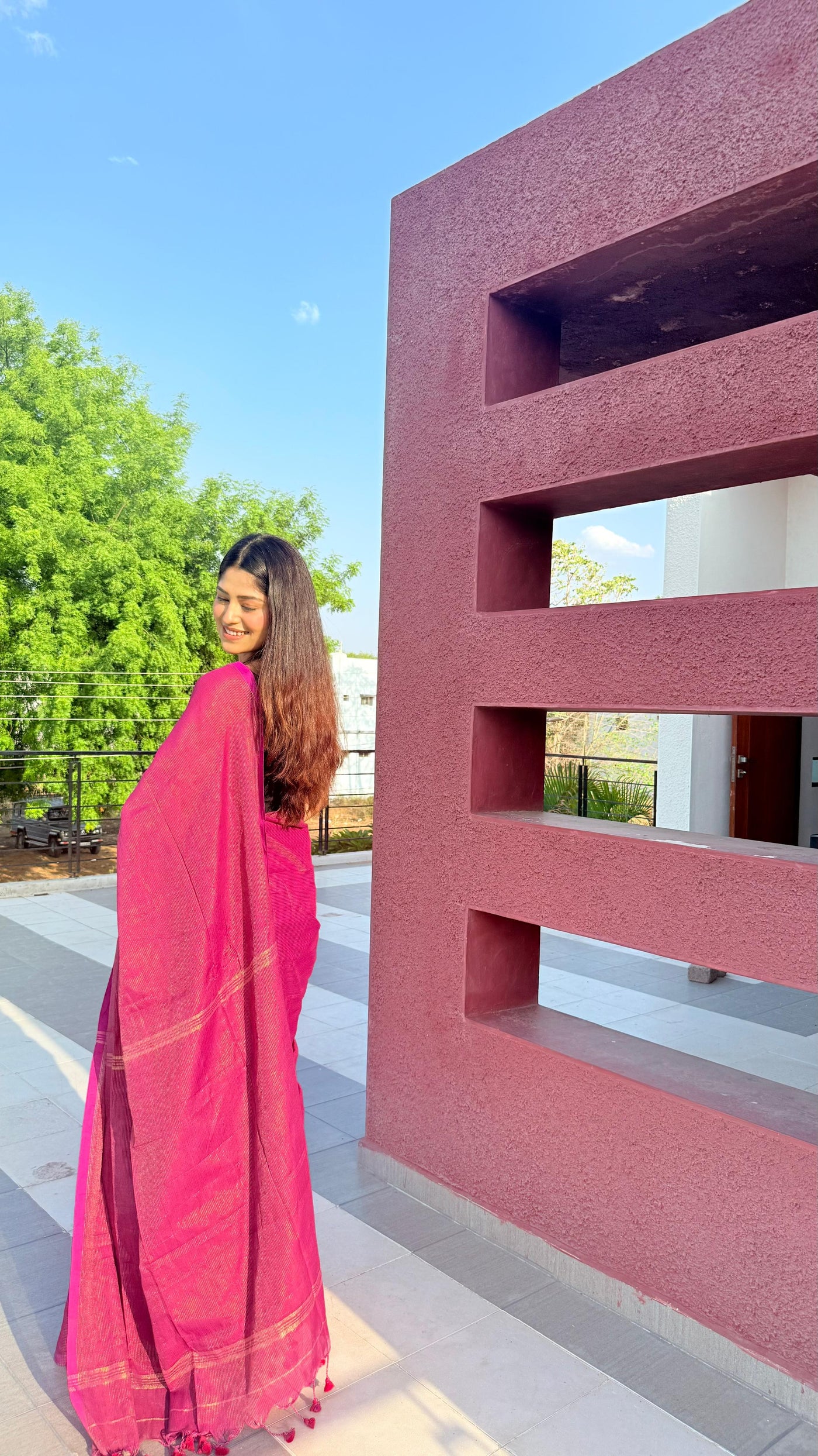 Rangdhaaga Magenta mini Zari Lining Cotton Saree
