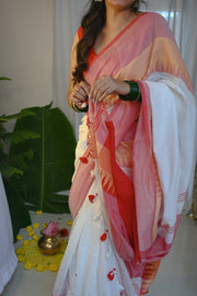 RangDhaaga White with Pink Temple Border Saree